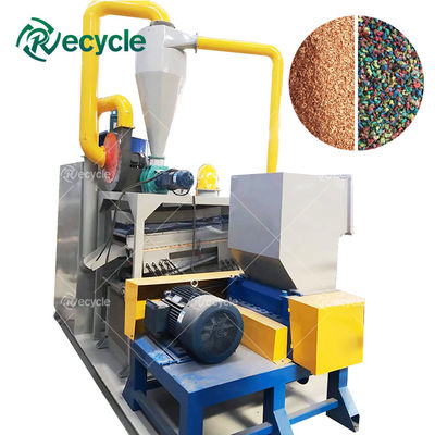 1. 廃棄ケーブルをクラッシャーマシンに入れて,彼らは最初に粒にカットされます. このプロセス中に,銅とプラスチックが分離されていますが,まだ一緒に混ざっています.